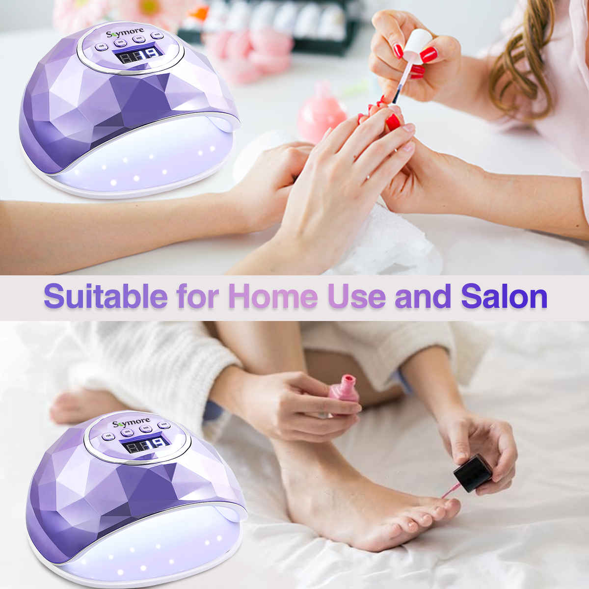 UV LED DOUBLE LIGHT SOURCE ---Comparing with traditional UV light, this light is closer to white light, which ensures the color of nail gel and does no harm to your eyes besides protects your skin from being black.
